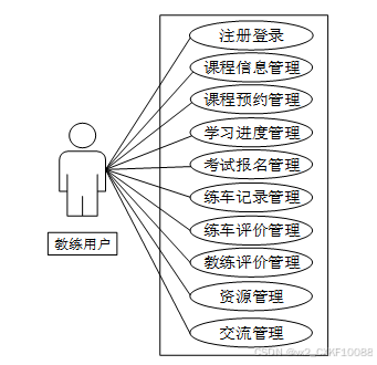 禾泰驾校考试和练车预约系统中教练用户角色用例图如图2.2所示: