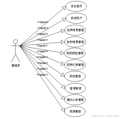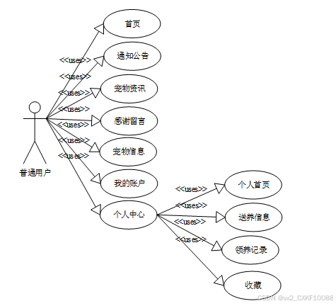 宠物领养及健康管理系统的完整UML用例图分别如下图所示。