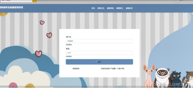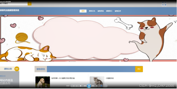 首页:展示系统概况、最新的通知公告、宠物资讯等内容,方便用户获取相关信息。