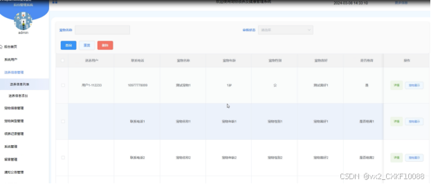 图4-10宠物信息管理界面图