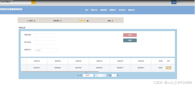 领养记录:展示用户的宠物领养历史记录。