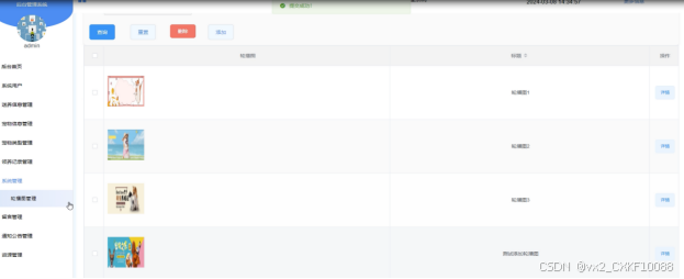 系统管理:管理系统首页的轮播图内容,包括添加、编辑、删除轮播图图片和相关链接,提升系统的视觉效果。