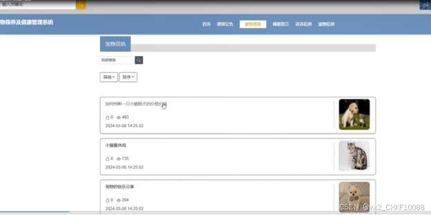 资源管理:管理系统的宠物相关资讯内容,包括添加、编辑、删除资讯和分类等操作,确保信息的及时更新和完整性。