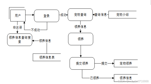 开发宠物领养及健康管理系统最主要的一个目的就是实现宠物的领养,系统的数据流图如下所示。