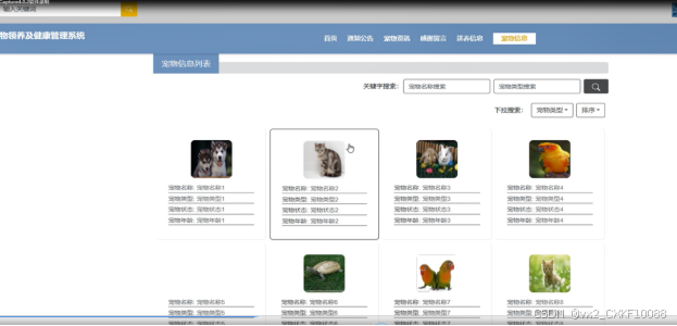 宠物信息:提供用户浏览宠物领养信息的功能,包括宠物种类、领养条件、领养流程等。