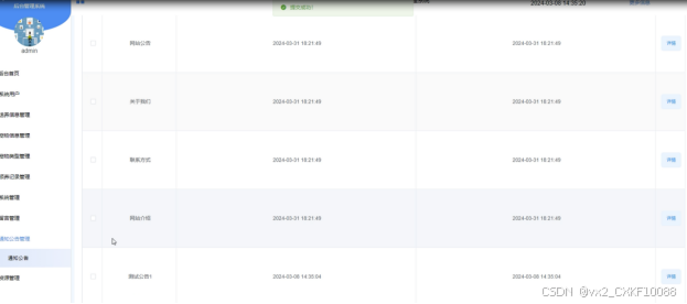 通知公告管理:管理系统发布的通知和公告信息,包括添加新通知、编辑通知内容、设置发布时间等操作,确保信息及时传达。