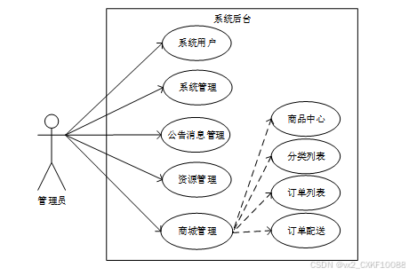 后台管理员主要实现了是对系统用户信息、轮播图、公告通知信息、电商资讯、商品中心、分类列表、订单列表、订单配送等信息的增删改查操作。后台管理员的用例说明如下表所示: