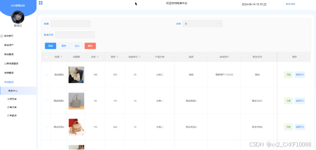 后台管理人员对多端电商平台内的不同商品中心的分类下的商品中心信息进行维护和管理的,商品中心管理界面如下图4-19所示。