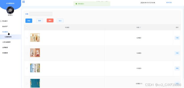 管理人员在“系统管理”这一菜单下是可以对多端电商平台内展示的轮播图进行添加修改的。系统管理界面如下图4-18所示。