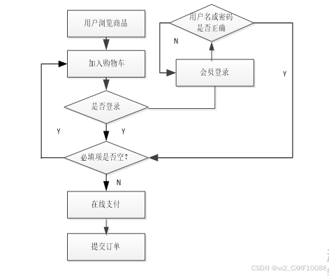 | 基本事件流 | 1.进入系统登录界面 2.点击商品中心,选择某条商品中心查看详情 3.加入购物车或者立即购买 4.输入订单信息提交订单 |