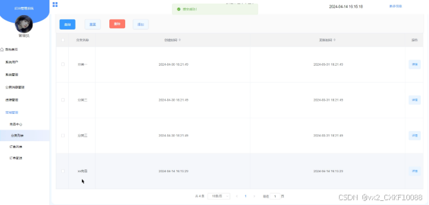 后台管理人员是可以对多端电商平台内的商品中心的类别进行管控。分类列表界面如下图4-20所示。