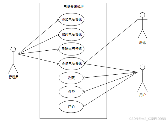 (1)电商资讯查看功能,主要实现了游客是对电商资讯的查看,用户进行评论、收藏、点赞,用例说明如下表所示: