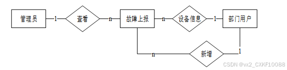对于一个要开发的系统来说,E-R图可以让别人能更快更轻松的了解此系统的事务及它们之间的关系。根据系统分析阶段所得出的结论确定了在校园设备维修管理系统中存在着多个实体分别是用部门用户、管理员、设备信息、故障上报、。