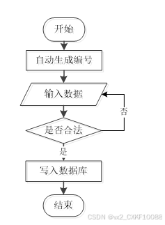 用户成功登入系统后能够实现数据新增的操作,数据新增的编号是特定的,用户不能随意填写,新增的信息提交后经过系统验证合格就可完成新增。数据新增的流程图如下图图2-3所示: