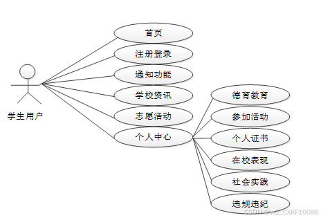 图2-5大学生德育积分管理系统学生用户角色用例图