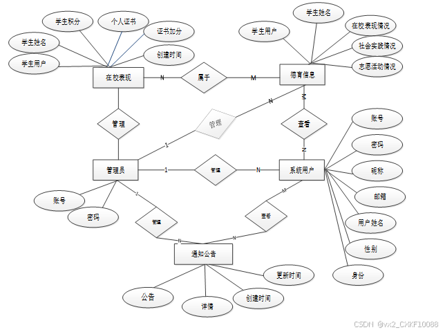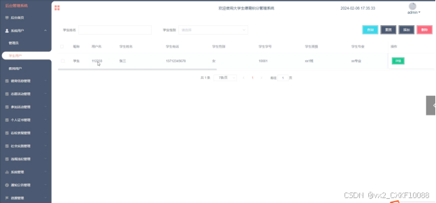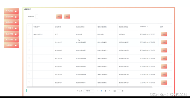 (8)社会实践管理:管理员可以查看和管理学生参与的社会实践活动记录,包括社会实践加分等。