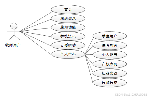 (2)系统用户管理:管理员负责管理系统的用户,包括管理员、学生用户和教师用户。他们可以进行用户账号的创建、权限的管理和用户信息的维护。