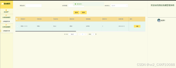 Since the 1920s, computers have crazily appeared in people's lives and work, becoming a good helper for people's lives and work. Computers have penetrated into every household, and online work and teaching have replaced traditional manual record management methods. Using computers for work can be easily achieved without being limited to fixed times and locations, and cross regional communication can be easily achieved through computer systems. With the popularization of higher education, the number of students is also continuously increasing, making traditional course scheduling information query management increasingly inconvenient. Moreover, manual query management also reduces work efficiency, increases the workload of teachers and administrators, and is not convenient for students to query. Therefore, a university course scheduling management system has been developed.