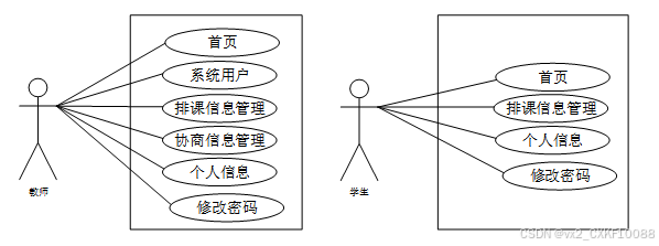 高校排课管理系统中学生角色和教师角色用例图如图2.4所示: