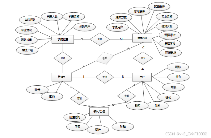 (3)用户管理:系统内设多种用户角色,包括管理员、学院用户、教师用户和学生用户,分别对应不同的操作权限。管理员可进行用户账户创建、编辑、删除以及权限分配等操作。