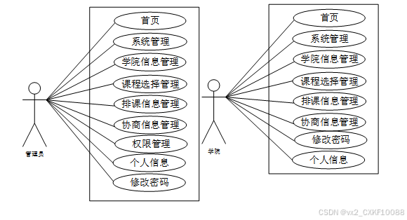 高校排课管理系统 管理员和学院角色用例图如图2.5所示: