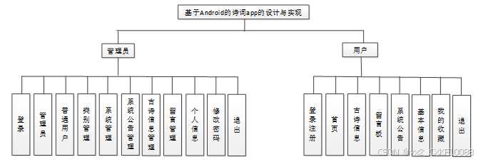 诗词app我划分为了普通用户管理模块和管理员模块这两大部分。