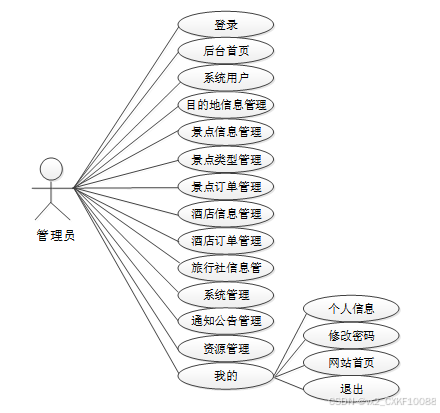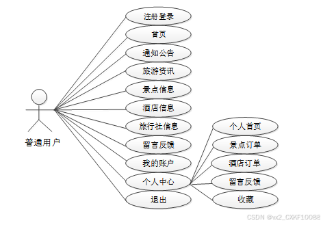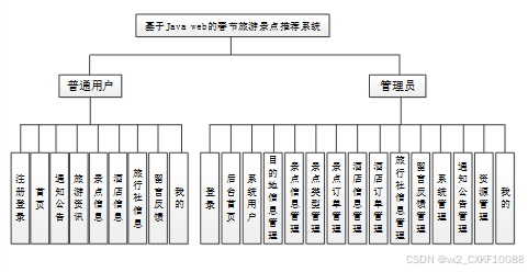 按照基于Java web的春节旅游景点推荐系统的角色,主要划分为普通用户和管理员两大功能模块,具体内容如下。
