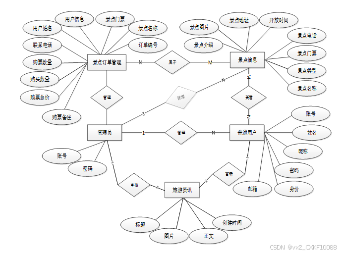 基于Java web的春节旅游景点推荐系统中主要的数据库表总E-R实体关系图如下图3-3所示。
