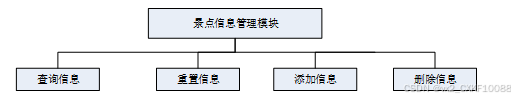 学景点信息管理模块是本系统中的重要功能之一。该模块的设计旨在提供对景点信息的发布、编辑、删除和查看等管理功能,以便及时、准确地向系统用户发布相关的景点信息。其模块功能结构,具体的结构图如下: