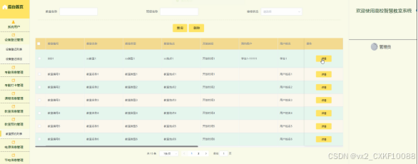(5)教室预约管理:管理员可以通过“教室预约”菜单对教室预约进行管控。