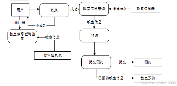 开发高校智慧教室系统最主要的一个目的就是实现用户对教室的在线预约,图2-4就是系统的数据流图。
