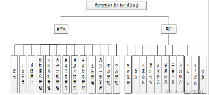 旅游数据分析与可视化系统开发是中需要存储不少景点信息,其模块功能结构,具体的结构图如下: