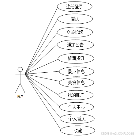 图2-1 旅游数据分析与可视化系统开发前台用户角色用例图