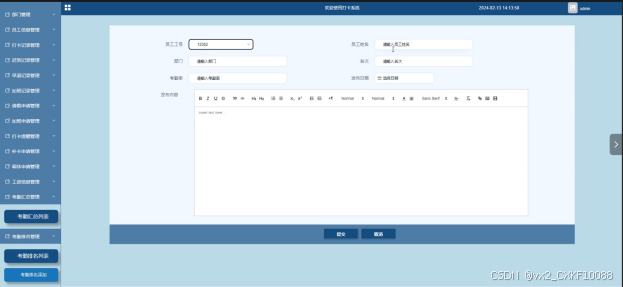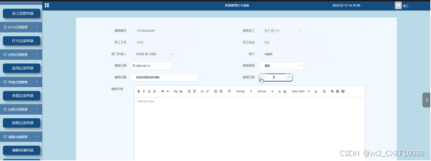 本文首先阐述了系统的研究背景和意义;然后对系统进行了可行性分析、功能性等分析;接着详细介绍了系统的设计原理和实现细节,包括系统架构、主要功能模块、数据库设计等;最后对系统进行了测试,证明了该系统可以企业考勤管理的需求,也为其他类似的系统设计和实现提供了有益的参考。