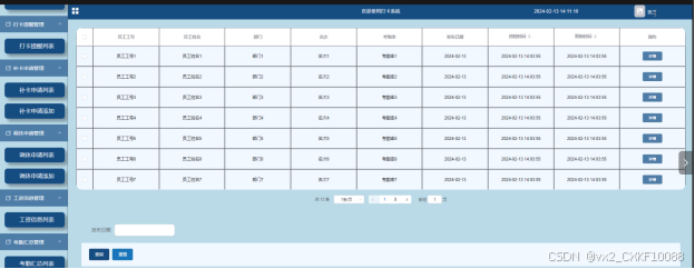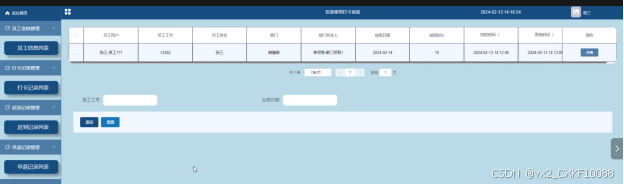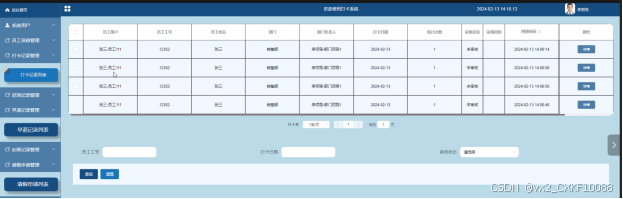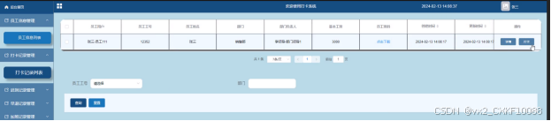 部门负责人可以查看打卡记录列表中某一员工的打卡详情并进行审核和回复,可以对列表信息进行查询和重置删除操作。其界面如下图4-10所示。