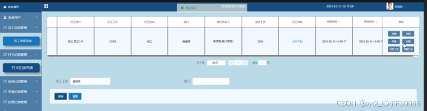 部门负责人可以查看员工信息列表中某一用户的详情,可以提交该员工迟到、早退、加班、发放工资、考勤汇总信息;可以对列表信息进行查询和重置操作。其界面如下图4-9所示。