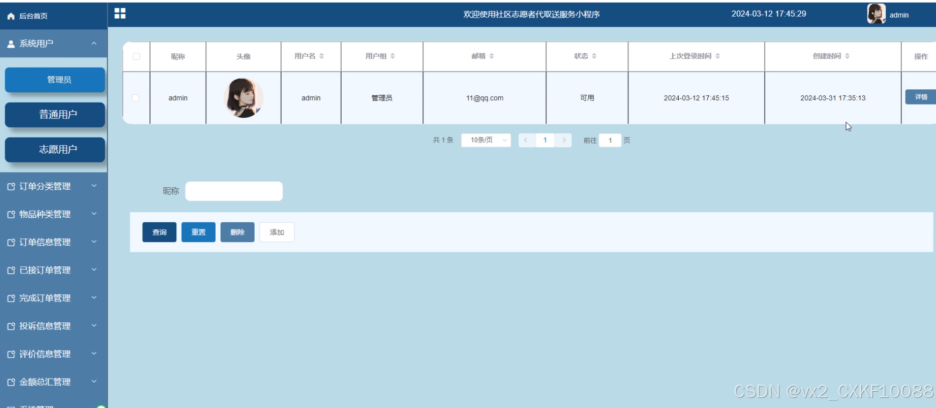 Therefore, we look forward to the construction of the Spring Boot community volunteer pick-up and delivery service system to provide community residents with a more convenient and efficient service experience, while also providing strong support for the management and service of community volunteers. We believe that such a system will help promote the modernization and intelligence process of community services, and contribute to building a more harmonious and beautiful community environment.