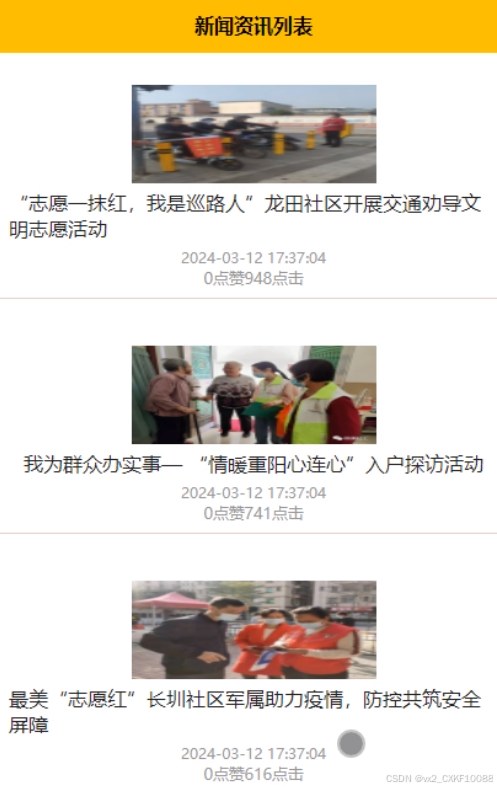 新闻资讯: 提供社区相关的新闻资讯信息,包括社区活动、志愿者动态等内容,帮助用户了解社区动态。