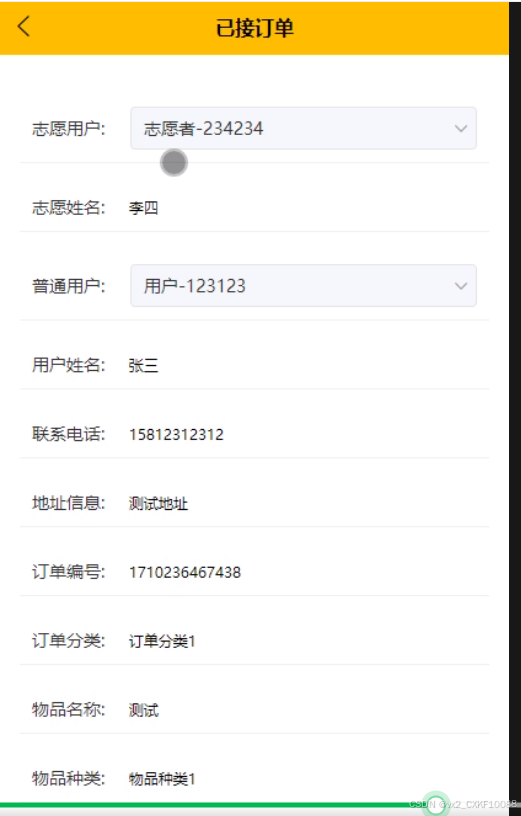 - 已接订单测试