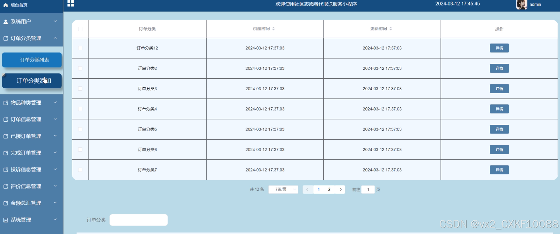 图4-9订单分类列表管理界面图