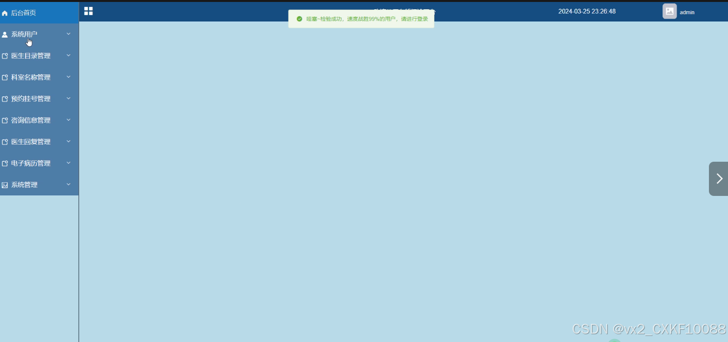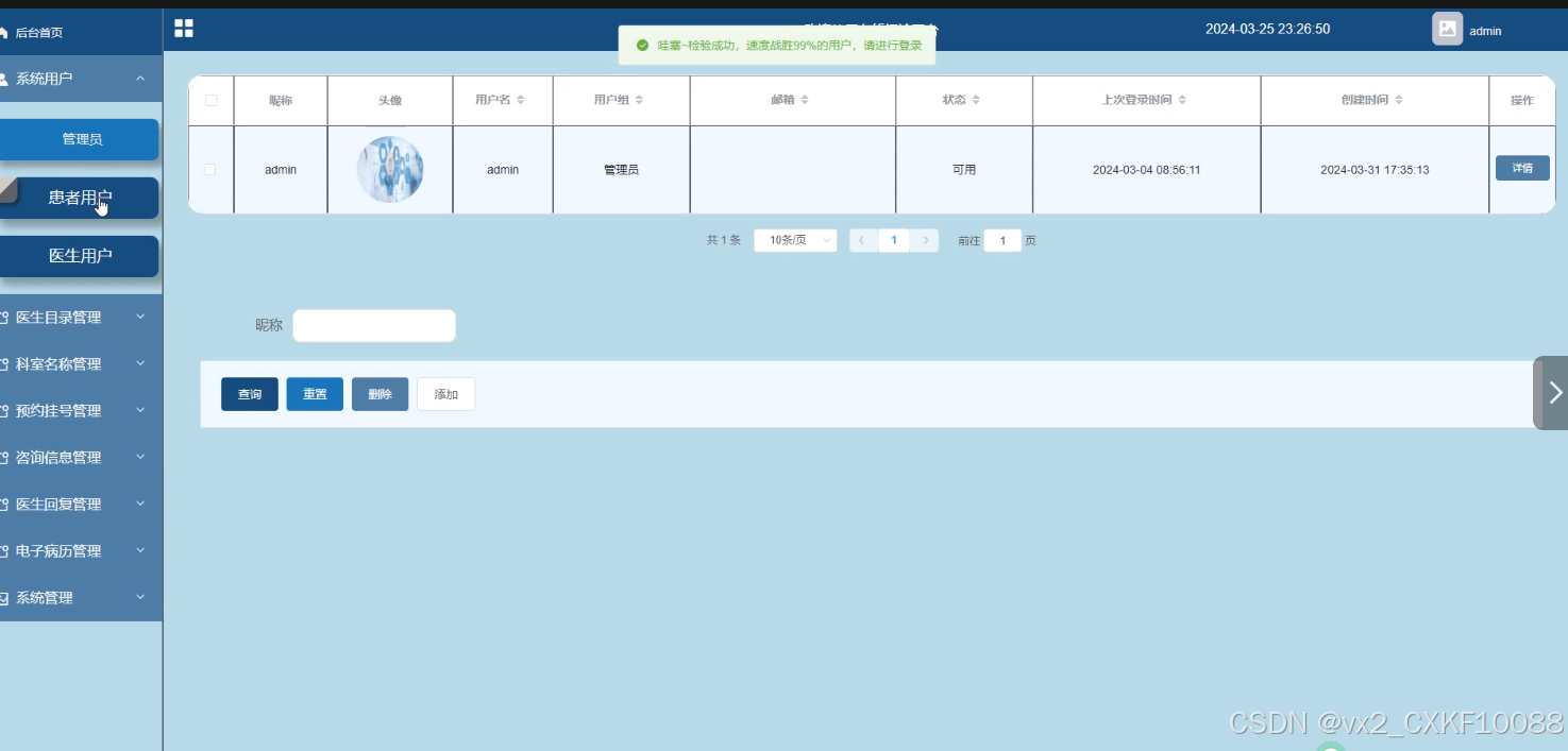 除了医生和患者之外,平台还提供了管理员角色,方便对平台进行管理和维护。管理员可以实时监控系统的运行状态、处理用户反馈和投诉,并进行相应的优化和改进。这种灵活的管理方式使得平台能够持续提升用户体验和服务质量。