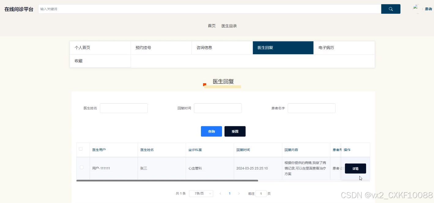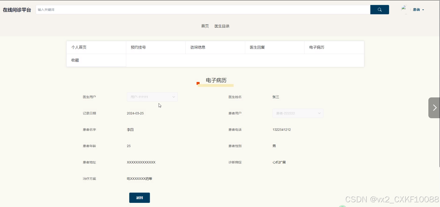通过对在线问诊平台的测试结果进行分析,系统的运行性能还是比较稳定的。但是出现了一些异常,这些是异常可以控制的,但也满足了需求分析的结果。本次的页面设计通过的脚部的公共页面在响应式时出现了一点问题,通过后期的修改、调试后来提升系统的页面美化,让用户拥有更好的体验感。