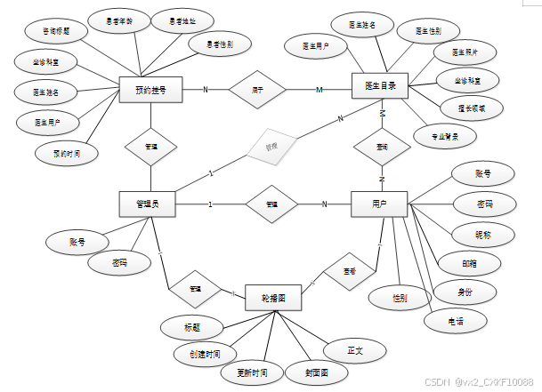 在线问诊平台采用的数据库是MySQL,该部分将根据系统需求和设计,设计合理的数据库。本系统考虑到之后系统的扩展集群,数据库将不使用外键。此外,不用外键时数据管理也较为简单,操作更加方便,性能更高。