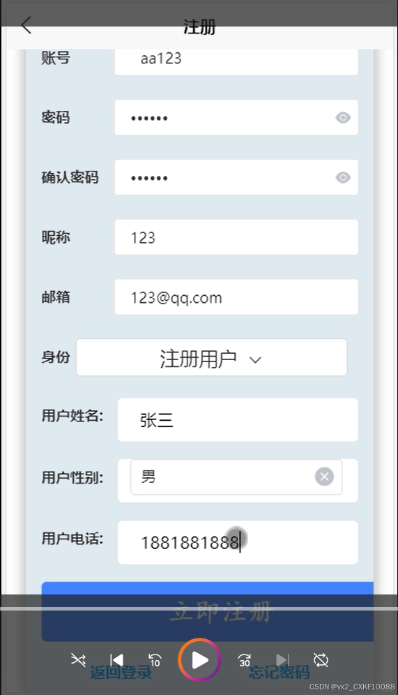 (1)注册登录:用户注册并登录系统,可对个人信息进行增删改查,比如个人资料、头像和密码修改。