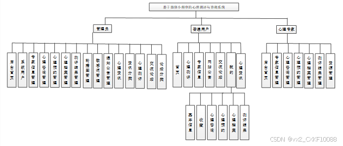 以上是基于微信小程序和SpringBoot的心理测评与咨询系统的功能需求分析,涵盖了普通用户、管理员和心理专家三个角色的功能设计与实现要求。
