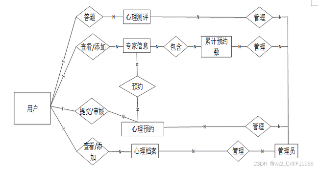 图3-2 基于微信小程序的心理测评与咨询系统E-R实体关系图