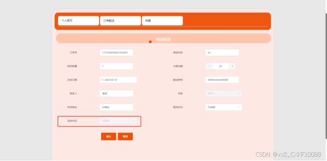 - 我的:用户可以修改“我的账户”中的个人资料和登录密码;可以查看和管理“个人中心”中的个人首页、订单配送和收藏信息;点击“退出”即可退出系统的登录。