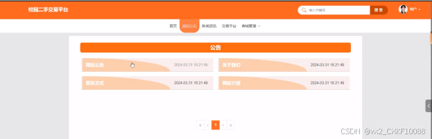 - 通知公告:用户可以查看系统发布的网站公告、关于我们、联系方式、网站介绍等信息。