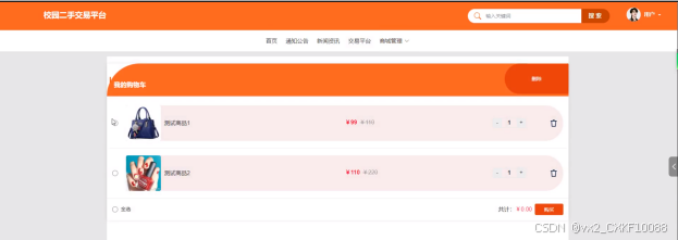- 商城管理:用户可以对购物车的商品数量进行增减,可以完成商品购买或者删商品信息;可以查看或删除我的订单信息。