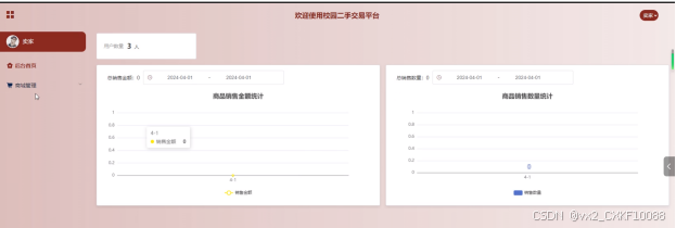 - 后台首页:用户可以查看后台首页展示的商品销售金额和商品销售数量统计图信息。